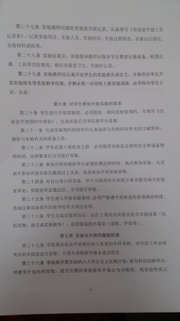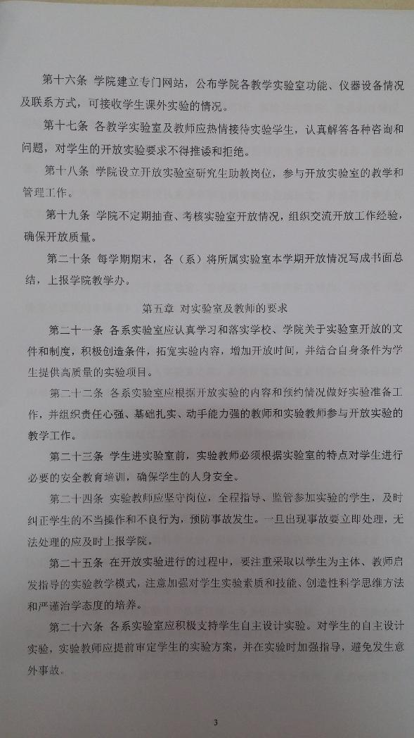 实验室开放是落实“以学生发展为中心”的教育理念,引导学生主动实践,培养大学生提出问题、分析问题和解决问题的能力,充分利用实验室资源的有效途径,也是落实本科教学审核评估整改工作的有效措施。为此,学院制定了《ok138cn太阳集团古天乐实验室开放实施细则(试行)》的文件。学院鼓励学生利用课余时间进入实验室开展实验,并将开放实验纳入大学生自主发展计划,视为科技创新学分。