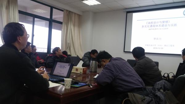 李自力教授从课程的历史沿革出发,从构建多元化的教学模式、建立多元化的实践教学体系、建设多元化的教学资源是课程建设三个方面,详细介绍了《油库设计与管理》课程的建设过程、经验和体会,并展示了课程的教学网站。与会教师对《油库设计与管理》课程取得的成绩和课程组所做的大量工作感到由衷的敬佩,并表示李自力教授的工作经验对自己今后的课程建设工作有很大的启发作用。同时,参会教师针对课程建设的重点和难点进行了交流和讨论,气氛热烈,达到了活动预期的目的。