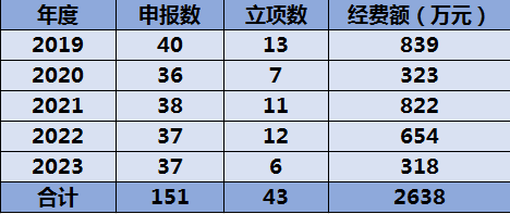 年度 | 申报数 | 立项数 | 经费额(万元) |