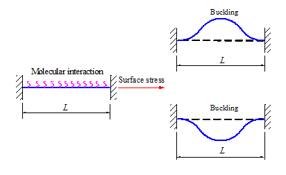 左图为液滴的毛细力诱发的微梁的变形,右图为固体的表面应力诱发的微纳米梁的屈曲。