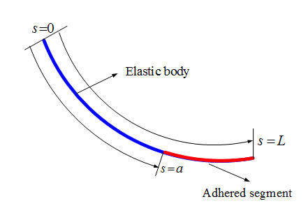 提出了统一粘附的力学模型,利用可动边界条件下的变分原理,可以推导出在临界点处的横截性边界条件。