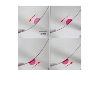 左图为某椭圆形纤维周围弯液面诱导的气泡运移,右图为某悬臂梁大变形时(类螺旋线)上液滴的运移。