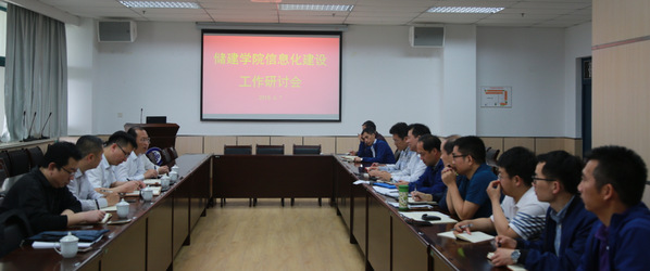为进一步推进信息化建设,加强信息技术与教育教学深度融合,2018年6月7日上午,学校信息化建设处总工程师李忠伟一行六人来我院开展调研工作,听取学院信息化建设情况汇报。座谈会由李玉星院长主持,唐建峰副院长做学院建设汇报,学院领导班子成员及各系教师代表出席。