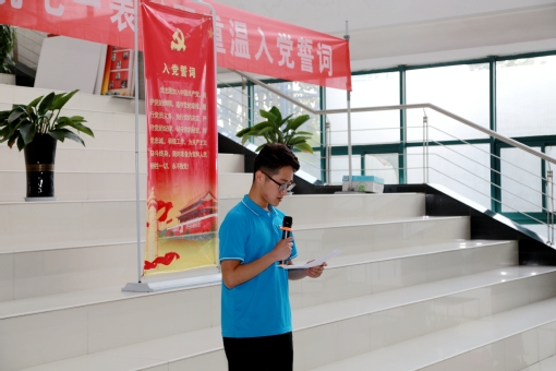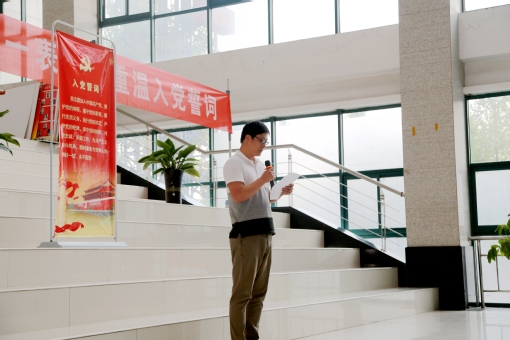 随后,研究生党员代表李晓磊带领全体党员庄严宣誓,慷慨激昂的誓词中流露出储建学院全体师生党员对党的热忱,表达了他们对党的庄严承诺,现场的老党员同志也庄严地举起右手再一次重温了入党誓词。