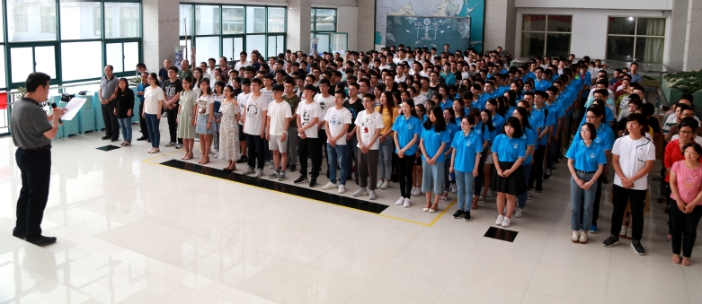 6月21日,在中国共产党成立97周年到来之际,ok138cn太阳集团古天乐党委组织全体师生党员在工科D大厅隆重举行七一表彰大会暨党员重温入党誓词活动。学院党委书记高平发、党委副书记张程、党委委员及各党支部书记、教职工党员、学生党员200余人参加活动。
