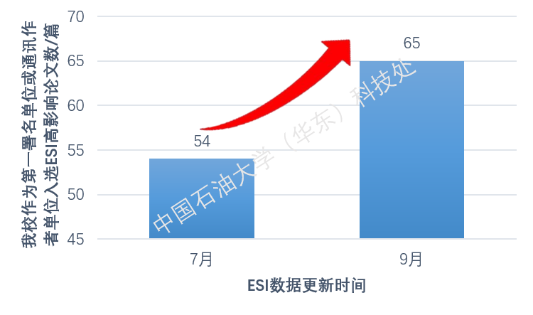 1 我校入选2018年9月ESI高影响论文的基本情况 我校作为第一署名单位或通讯作者单位入选ESI高影响论文65篇,相比7月增长11篇(图2)。其中,62篇论文入选高被引论文,3篇论文同时入选高被引论文和热点论文。