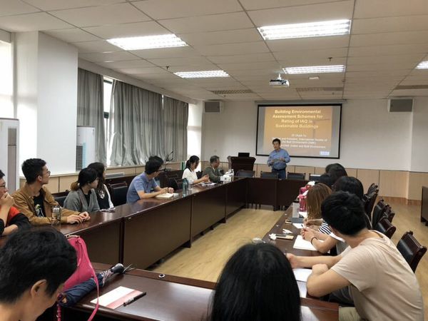 Chuck Wah Francis YU教授有30多年的从事室内空气品质和建筑环境相关研究的工作经验。Yu教授以可持续性建筑为中心,对比研究了欧洲、美国、韩国、香港等不同地区对建筑环境的评价体系,分析了影响建筑可持续化的关键因素,提出了自己对绿色建筑可持续发展的深入理解。YU教授宽广的国际视野、丰富的研究成果、严谨的治学精神,给我院师生留下了深刻印象,与会师生受益匪浅。