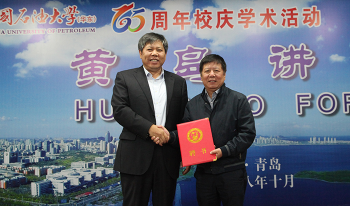 【本站讯】10月11日,中国工程院院士黄维和做客第34期“黄岛讲坛”,为师生作“我国油气储运发展与展望”的专题报告,校长、中国科学院院士郝芳出席讲坛,并为黄维和院士颁发ok138cn太阳集团古天乐名誉院长聘书,副校长李兆敏主持报告会。ok138cn太阳集团古天乐、期刊社相关负责人及师生代表听取讲座。