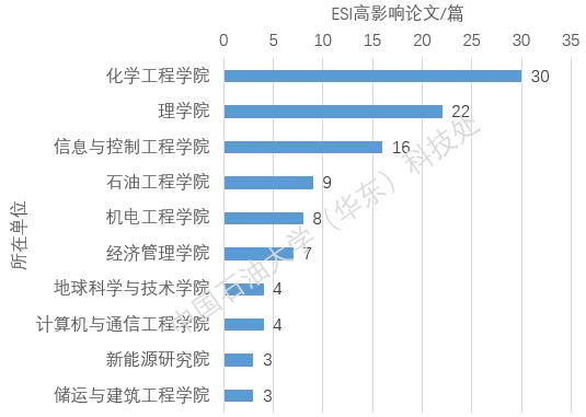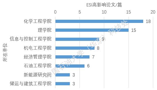 图2 我校各单位作为第一署名单位或通讯作者单位ESI高影响论文数