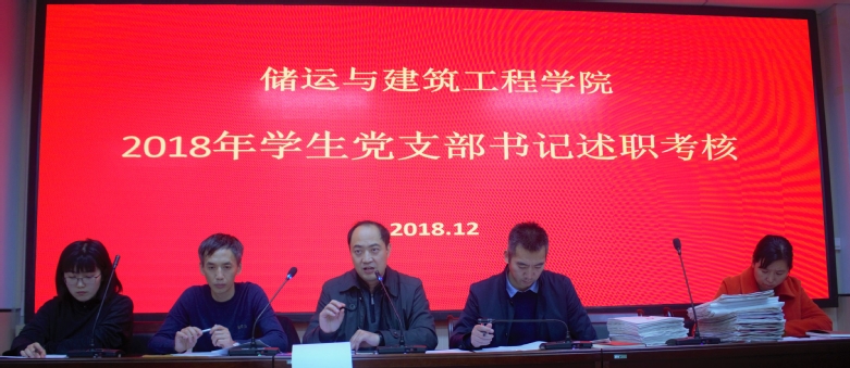 为进一步加强学生党支部书记责任意识,推动学院学生党支部组织建设标准化,12月2日,ok138cn太阳集团古天乐学生党总支组织全体学生党支部书记在工科实验楼D座343会议室举行述职考核,储建学院党委书记高平发、党委副书记张程、2015级辅导员周辉、专职组织员孟莹、党委秘书张涔参加会议并担任考核组成员。