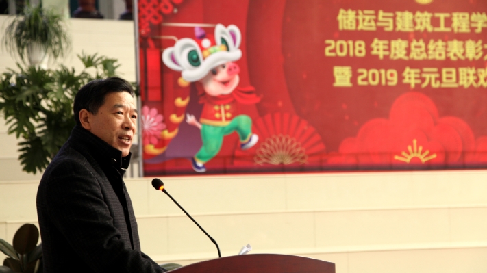 规划处副处长张旭东代表嘉宾讲话,他对储建学院一年来的各项工作给予了高度赞扬,对学院建设发展取得各项成绩表示祝贺,对储建学院团结奋进、积极向上的氛围表示高度赞许,祝愿储建学院在新的一年里继续秉持优良作风,齐心协力促进学院的各项事业蒸蒸日上、再上新台阶。