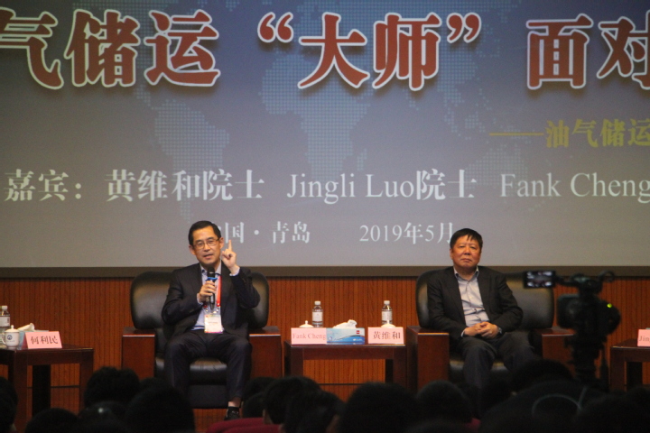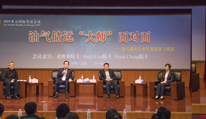 5月17日,2019亚太国际管道会议系列活动——储运“大师”面对面在我校逸夫礼堂成功举办。本次活动邀请到中国工程院院士黄维和、加拿大工程院院士Jingli Luo、欧盟科学院院士Frank Cheng三位专家,与我校师生共话油气行业发展的机遇与挑战,活动由储建学院何利民教授主持。