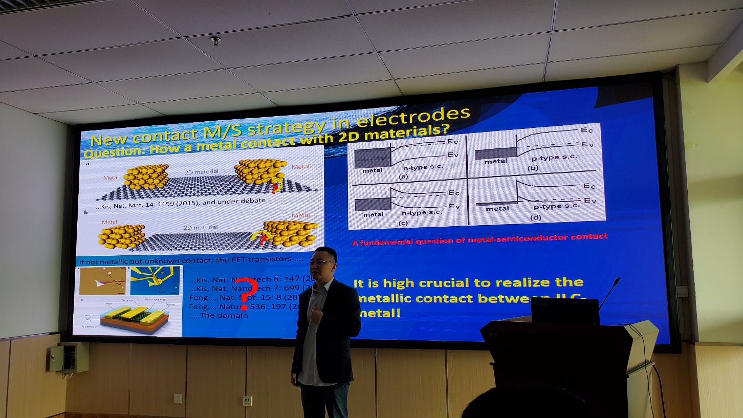 报告中,曹教授结合多年来的自身经历及科研实践,深入浅出的介绍了从XPS(X射线光电子能谱分析)、同步辐射X光源、第一性原理、超原子属性、空气电池等学术前沿基础概念,到0维团簇、纳米颗粒、新一代储能电极材料和新型仿生光学材料等研究领域的最新成果。在新型仿生光学材料研究介绍中,曹教授团队从生活中常见的绿色植物叶子表面比较粗糙受到启发,通过研究发现叶子表面微观结构的不同会直接影响叶子吸收光的能力,通过研究其中的物理原理,并使用第一性原理模拟并设计出具有最佳减反效果的微结构表面形态。其团队把此理念应用到太阳能电池板上,对其表面进行改造,大大提高了太阳能电池的发电效率,该成果能够被众多发展中国家充分利用从而为亟待解决的清洁能源问题提供高效可行的方案。曹教授的报告让在场师生深刻体会到了日常生活中常见的现象与科学研究的紧密联系,令人印象深刻,引起场下科研工作者的共鸣。最后曹教授详细回答了同学们提出关于硫化钼如何与另外一个电极紧密接触的微观原理等问题,给从事相关领域的研究人员提供了新思路。