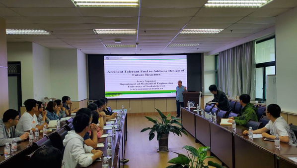 5月20日下午4:30,应我院储建论坛邀请,加拿大萨斯喀彻温大学(University of Saskatchewan)机械工程系Jerzy A. Szpunar教授在工科楼D345为师生作题为《未来核反应堆耐事故燃料研究》(Accident Tolerant Fuel for Future Nuclear Reactors)的学术报告。我院及来自全校的师生认真听取报告并就其中的科学问题进行了热烈讨论。