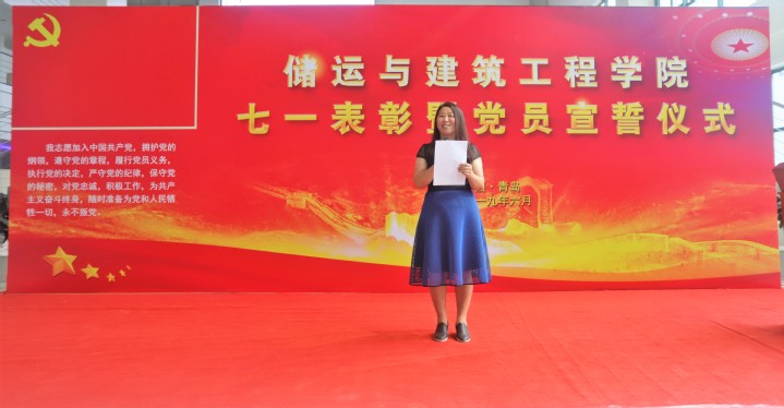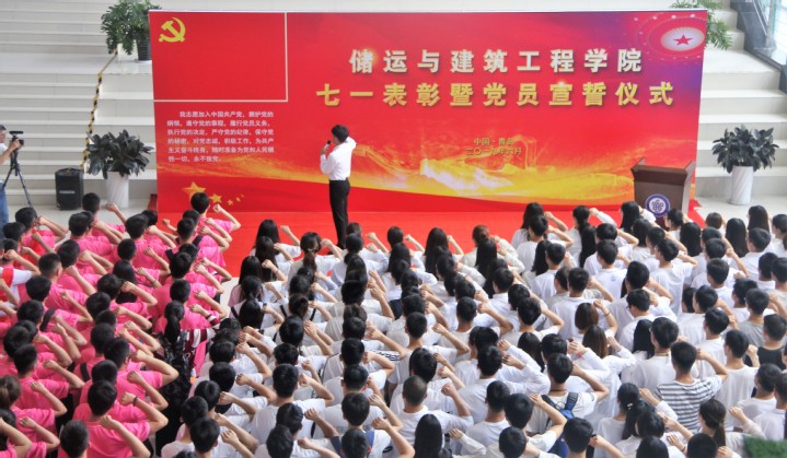 发言结束后,党员代表陈兆奇带领全体党员庄严宣读入党誓词,慷慨激昂的誓词中流露出储建学院全体师生党员对党的热忱,表达了他们对党的庄严承诺,现场的老党员同志也庄严地举起右手再一次重温了入党誓词。