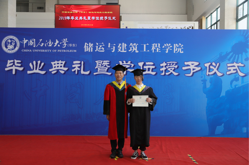 仪式主持人研究生辅导员张钦首先代表学院为全体毕业生送上最真诚的祝福,并对无私支持毕业生的亲人们、悉心指导的老师们、朝夕陪伴的同学们表示诚挚的感谢,随后汇报了2019届毕业生所取得的成绩。学院共有2019届毕业生716人,共有134名研究生毕业生、576名本科毕业生顺利完成学业获得学位。初次就业率达到94.26%,本科生的就业率达92.78%,博士、硕士研究生就业率均为100%;39名同学出国留学;2015级本科生高度重视学风建设,依托“学生共进成长团队”的管理模式,促进学生自我管理、自我教育、自我服务,通过党建引领风气,带动年级各项工作争先创优,多个班级获评学校优良学风班,土木1503班获评学校优良学风标兵班,大学四年实现考试“零作弊”,扎实的学风在全校各教学院部中享有较高声誉。良好的氛围给个人成长提供了更多的机会和平台,涌现出学校十大学生标兵黄修淞,优秀党员范丽欣等先进个人。硕士毕业生、校长奖、王涛英才奖学金获得者杨兆铭代表全校研究生毕业生在毕业典礼上发言。随后在热烈的掌声中,李玉星教授为在场毕业生依次授予学位。最后,毕业生代表为李玉星教授献上鲜花表示感谢。