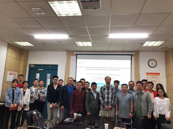 报告中,Le教授首先介绍了超声波检测骨质疏松过程中,数据的收集和反演方法。随后,也探讨了超声检测管线钢泄漏的发展方向和合作可能。报告结束后,我院多位教授、老师就管线钢无损检测等问题与Le教授进行了交流,部分与会学生也就报告内容向Le教授提出疑问,并得到了Le教授热情、全面的解答。