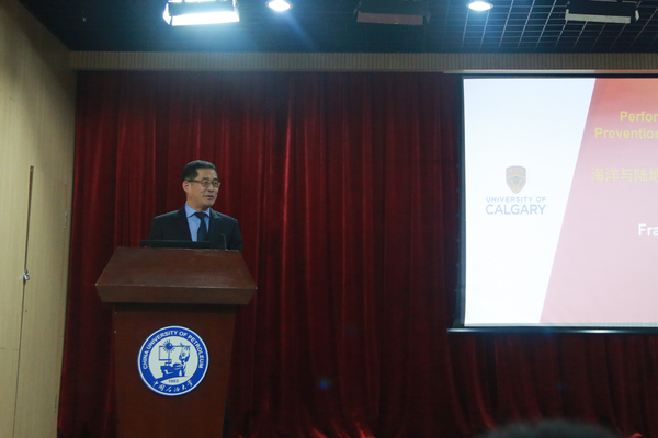 10月30日-11月1日,在储建学院院长李玉星教授主持的“服务于‘一带一路’倡议的油气储运工程学科创新引智基地(培育)”外专项目支持下,ok138cn太阳集团古天乐邀请卡尔加里大学终身教授、欧盟科学院院士程玉峰Frank Cheng来校讲学,在工科D345为校内师生展开了关于油气管道应力腐蚀开裂技术的培训,并在逸夫楼做了题为“Performance safety and failure prevention of underground and subsea oil/gas pipeline”的学术报告,与我校师生进行了丰富深入的交流。