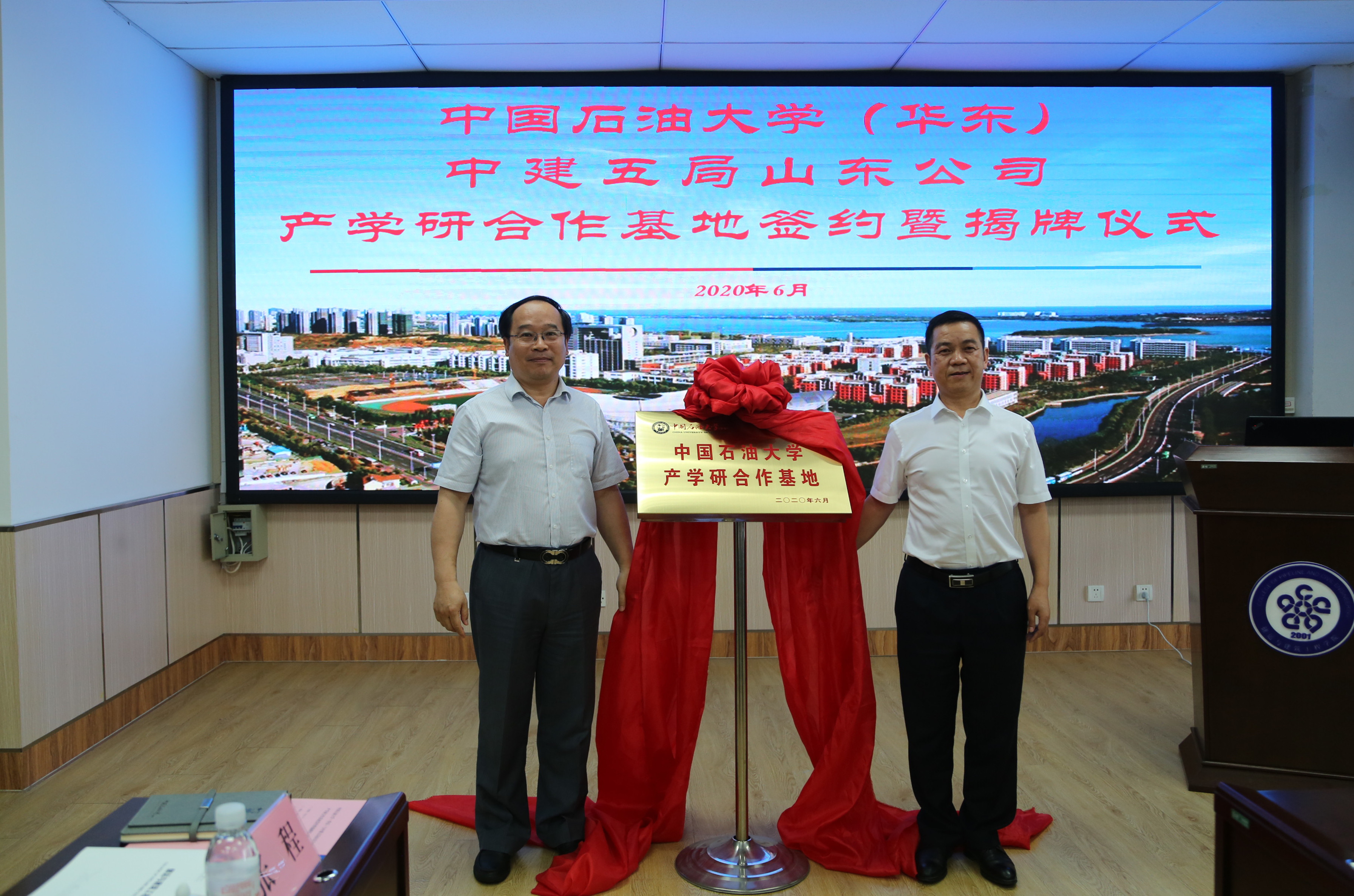 副校长姚军和山东分公司党委副书记童孝义共同为产学研合作基地揭牌