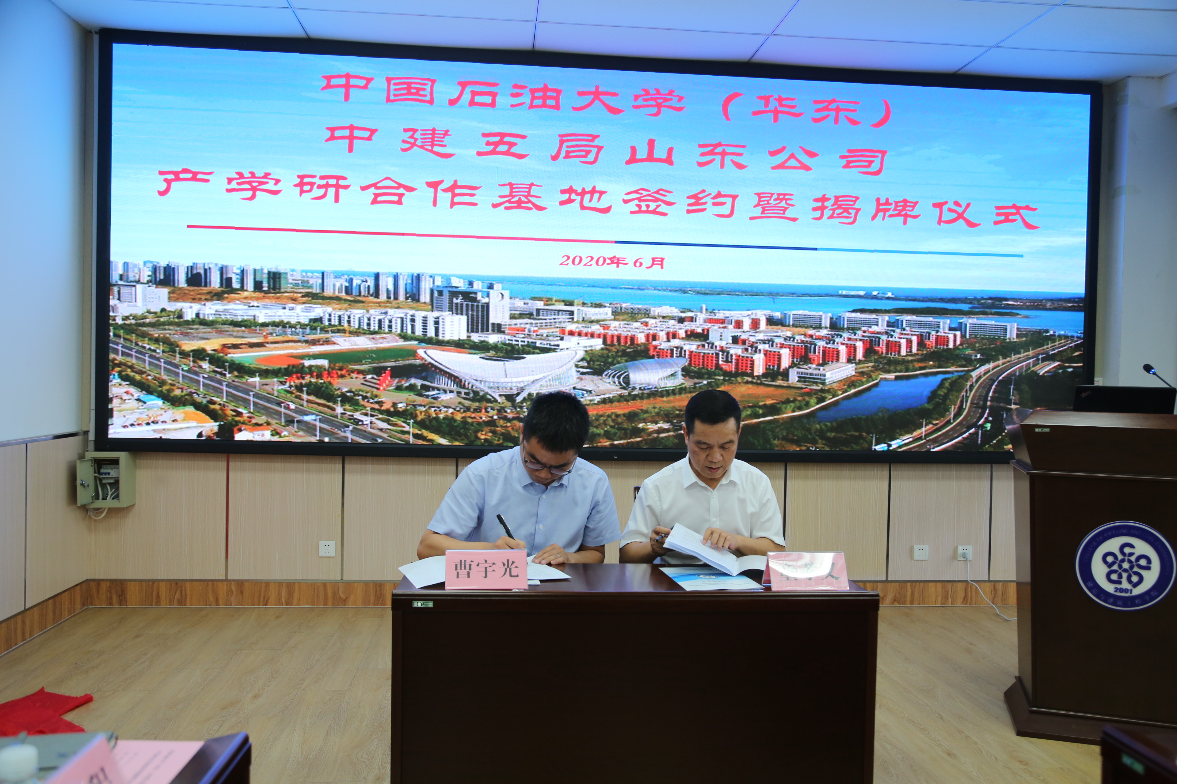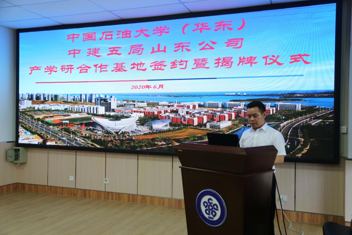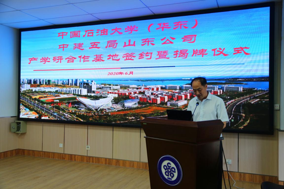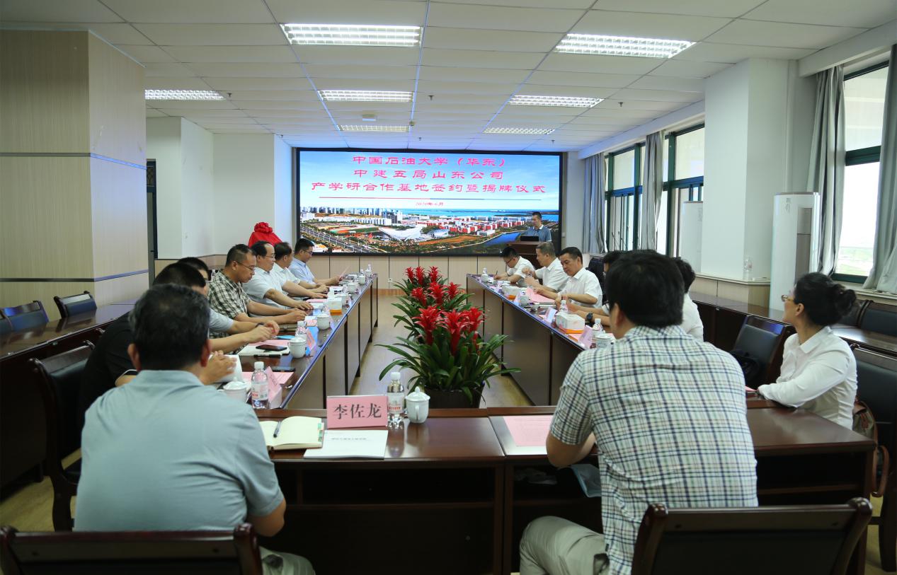 学校与中建五局山东公司签署了《ok138cn太阳集团与中国建筑五局山东公司关于共建产学研合作基地协议书》,姚军和童孝义共同为“中国石油大学产学研合作基地”揭牌。随后,双方进行座谈交流。