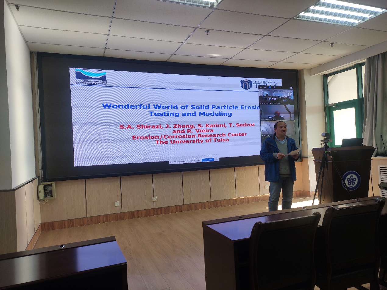 11月20日,塔尔萨大学机械系终身教授、国际著名油气管道完整性管理专家、冲蚀/腐蚀研究领域的国际顶尖领军人物Siamack A Shirazi教授和美国Zeeco集团工程师、塔尔萨大学冲蚀/腐蚀研究中心高级研究顾张俊博士受到我院邀请,分别作了题为“Wonderful World of Solid Particle Erosion Testing and Modeling”和“Into the fire: Combustion and Environmental Solutions for the Oil and Gas Industry”的云端学术讲座。相关领域老师、学生在线聆听了两位专家的精彩讲座。