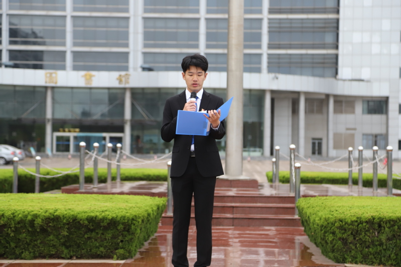 活动伊始,举行升旗仪式。现场氛围庄严肃穆,党员列阵而立,合唱国歌,在他们的注视下,五星红旗缓缓升起,随后主持人宣布本次活动正式开始。首先,由优秀青年党员代表陈兆琦面向全体参与人员进行演讲。在演讲中,他将党的百年光辉历史与自身的学习、工作相结合,陈兆琦同志作为党员,保持学习优秀的同时,还加强对自己的思想教育,不断以一名党员的身份要求自己,他讲到:“在场的每一个人都是我们党的忠实拥护者,我们都应该在学习工作中担当尽责、创新终究,做政治合格、纪律合格、品德合格、发挥作用合格的共产党员。”陈兆琦同志的演讲,展现出当代青年的爱国情怀和昂扬的精神风貌。
