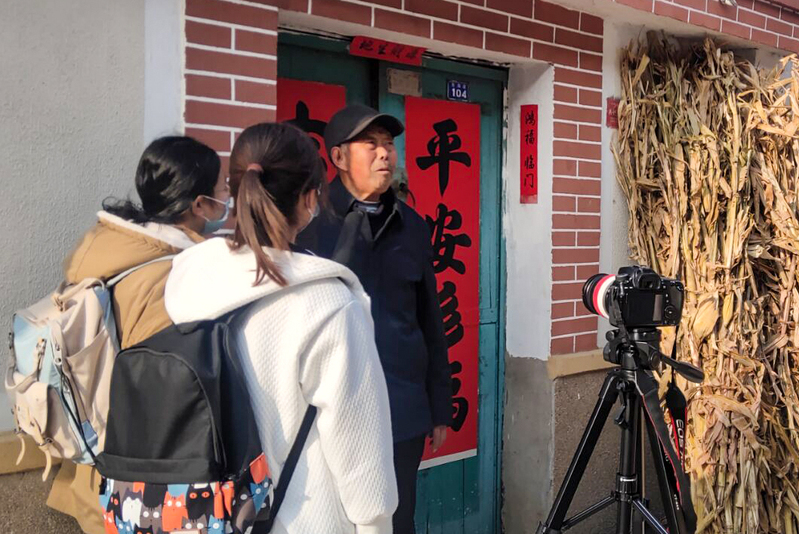 实践队成员在采访杨金友老人 李鉴儒 摄