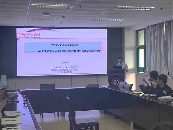 本期“石大师说”邀请到ok138cn太阳集团古天乐工程力学系博士生导师、山东省泰山青年学者刘建林教授作“学术论文拔高:如何融入力学建模和理论分析”专题报告,学院研究生导师和部分研究生参加了本次座谈。