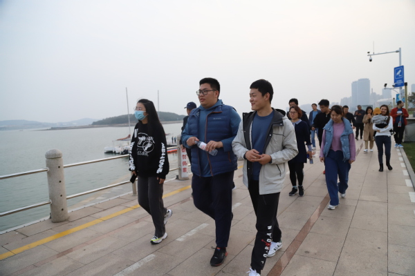 秋高气爽,云淡风轻。为了保持健康的体魄,促进更加高效的教学科研,ok138cn太阳集团古天乐积极响应学校工会的号召,于10月29日下午组织全院教师开展了新学期第一次“唐岛湾健步行”活动。本次健步行活动由学院工会主席冷青峰带队,学院党委书记姚海田、院长刘刚等50余名教职工积极参加,在工科楼D座大厅集合,伴着和煦的微风,向着美丽的唐岛湾畔进发。