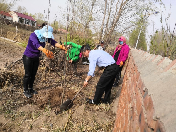 周辉与当地村民一起开展村集体项目劳动