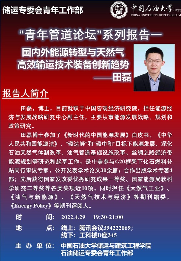 学术报告:“青年管道论坛”系列报告一国内外能源转型与天然气 高效输运技术装备创新趋势