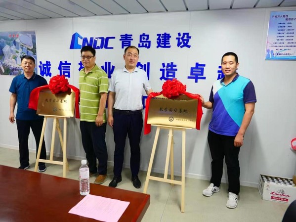 6月30日,ok138cn太阳集团古天乐与青岛建设集团股份有限公司开展校企合作交流,青岛建设集团董事长赵顺廷、总裁朱思远、ok138cn太阳集团古天乐党委书记姚海田、副院长唐建峰及土木工程系教师代表在青岛建设城阳分公司华润灵山湾壹号项目举行座谈会,并为产学研合作基地、党建联建共建、教学实习基地揭牌。