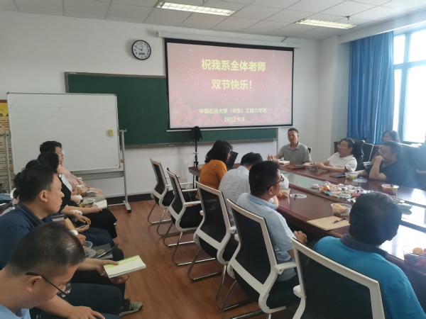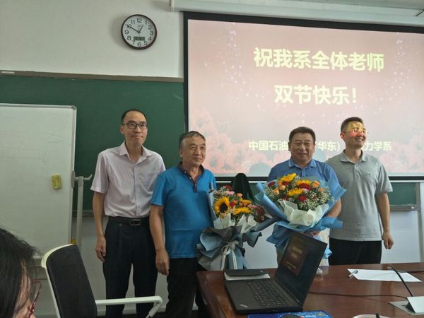 9月8日,临近中秋节和教师节,储建学院工程力学系在工科D719召开全体会议,热烈庆祝第38个教师节和中秋节。工程力学系主任叶贵根衷心感谢全体教师系一年来在教学、科研工作的辛苦付出,祝愿大家在即将到来的教师节和中秋节心情舒畅、工作顺利。退休教师于永南和于桂杰在座谈会上与教师们交流,两位教授在退休后仍任劳任怨,承担力学系的教学工作,减轻了年轻教师的教学压力,对力学系做出了巨大贡献,叶贵根代表力学系向两位教授献花表达感激之情。随后,工程力学系党政班子也就新学期的工作任务进行部署,为全系凝心聚力争取更高质量的发展营造了良好的氛围,奠定了良好的工作基础。