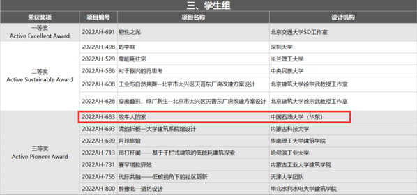 近日,2022 Active House Award中国区建筑设计竞赛在华南理工大学圆满落幕。我校建筑系2019级本科生王珏、刘腾2名同学基于学校定点帮扶内蒙古科左后旗项目的设计作品《牧牛人的家》荣获学生设计组三等奖,指导教师为李佐龙。