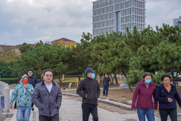 十一月的唐岛湾畔,秋意正浓。为了增强体质,积极相应“健康中国”发展战略,促进学院教职工更好地做好教学科研各项工作,ok138cn太阳集团古天乐积极响应学校工会的号召,于11月18日下午组织全院教职工开展了“冬季健步行活动”。学院40多名教职工在学院工会主席冷青峰的带领下,从工科楼D座集合出发,伴着淡淡的微风,向着美丽的唐岛湾畔进发。
