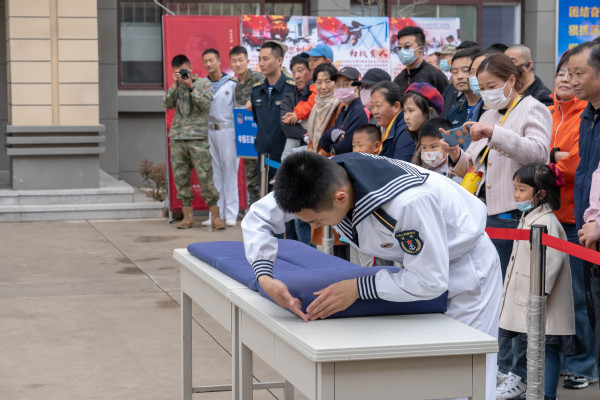 在校区引导员的指引下,石大一行先后到田径场观看了旗语、军体拳、刺杀操演练,学员们整齐划一的动作、气势如虹的口号让观众深受震撼,观看了学员十一大队的队列和内务整理演示后,进入学员宿舍参观,干净、整齐、温馨的宿舍充分展现了海军部队优良的作风和严格的纪律,在文体馆观看了枪械展示,并逐次实操枪械,体验模拟射击。