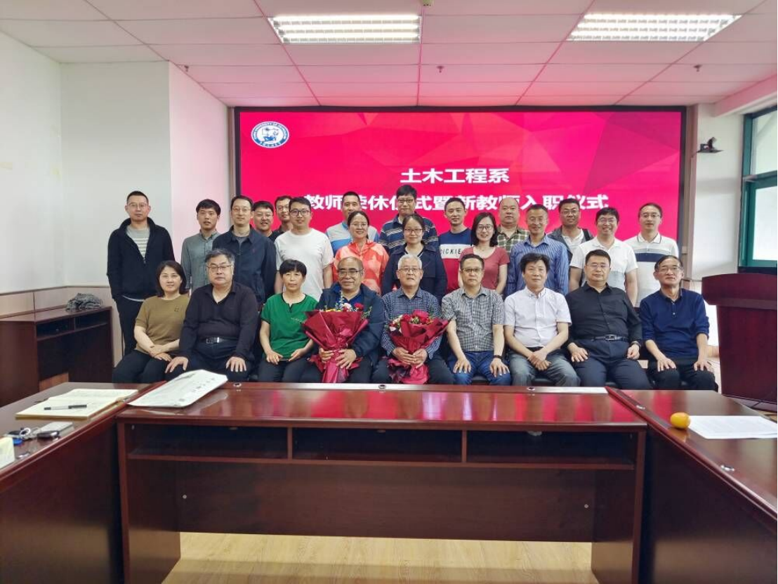 土木工程系系主任张玉和系党支部书记黄思凝代表土木工程系向两位退休教师致敬,感谢他们在学科建设、人才培养、科学研究做出的重要贡献,鼓励新教师尽快适应新环境,及时转变新角色,聚力取得新成绩。
