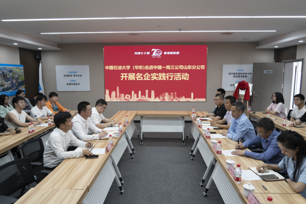 师生一行首先来到公司机关驻地,观看了中建一局三公司企业宣传片,中建一局三公司山东分公司党总支专职副书记刘佳龙介绍了公司作为“共和国长子”“新中国第一支建筑国家队”中建一局全资子企业70年来的恢弘历程,周辉介绍了学校及学院建设发展历程和学生教育培养情况,双方围绕党建联建、校企合作、人才供求、就业方向等话题进行互动交流。