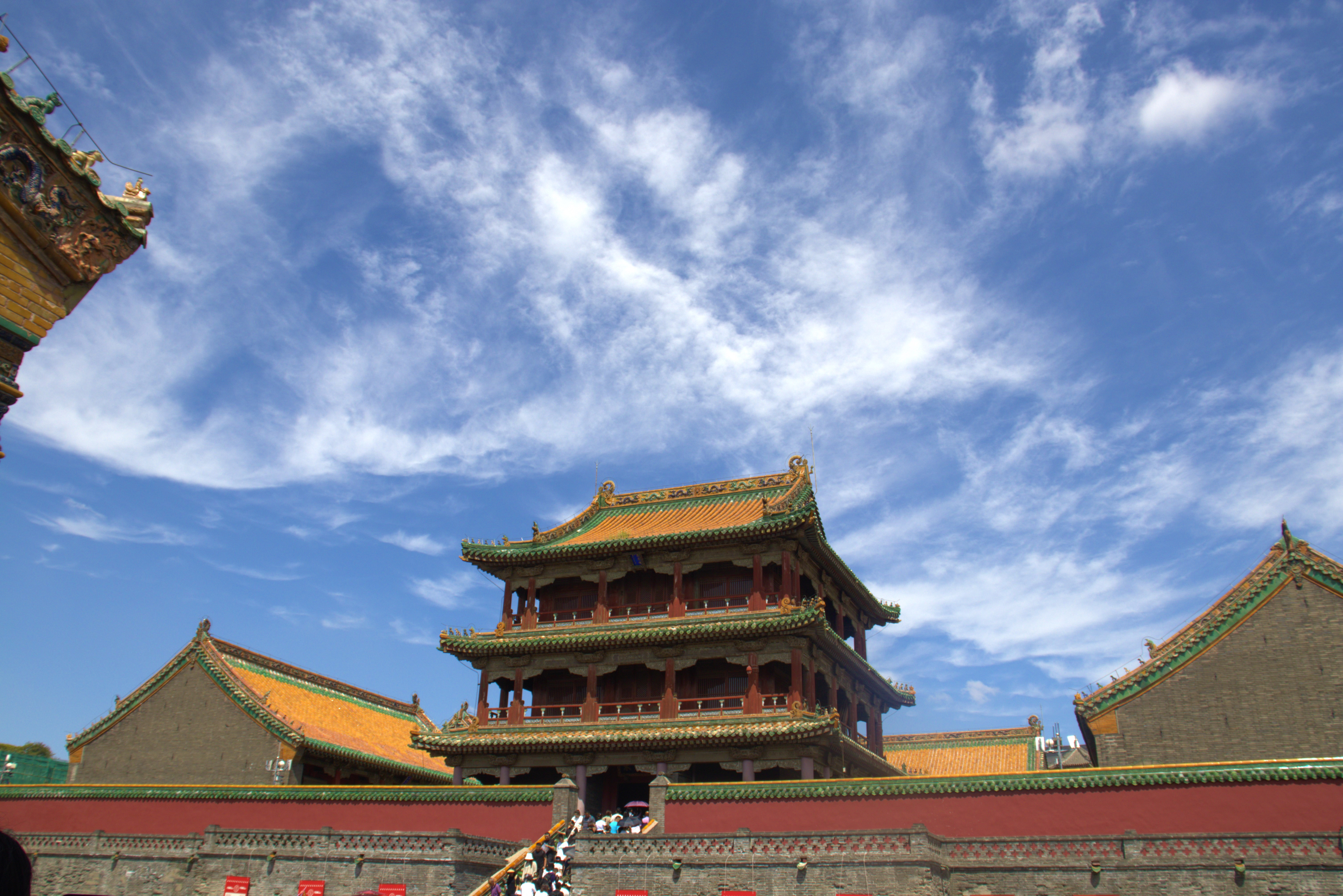 盛京故宫位于辽宁省沈阳市,为满清王朝的初期皇宫。由于清初财政状况拮据,因而皇宫修建规模较小,远没有北京故宫的富丽堂皇。实践队员置行于琉璃绿瓦间,感受着一个王朝起建时的古朴不易。目光所及之处,斑驳的红墙沉淀着四百多年的历史,殿前的日晷见证着日月的交替;沧桑与荒凉下,是昔日的盛京风华,是满族王朝坚韧而深沉的流金岁月。“之前曾去过北京故宫,沈阳故宫相比于北京故宫的满族特色更鲜明,不亲眼见到不会有这么直观的感受。”实践队员田嘉欣轻抚古朴的铜锁说。在导游的讲解下,实践队员了解到凤凰楼内檐彩画体现出满族特色三宝珠吉祥草,故宫东路生动而粗犷的单体造型与朴素的装饰也带有北京故宫所没有的原始美,但是相比于赫图阿拉城的传统满族建筑,沈阳故宫也已体现出汉、满、蒙、藏等多民族文化融合的建筑风格。