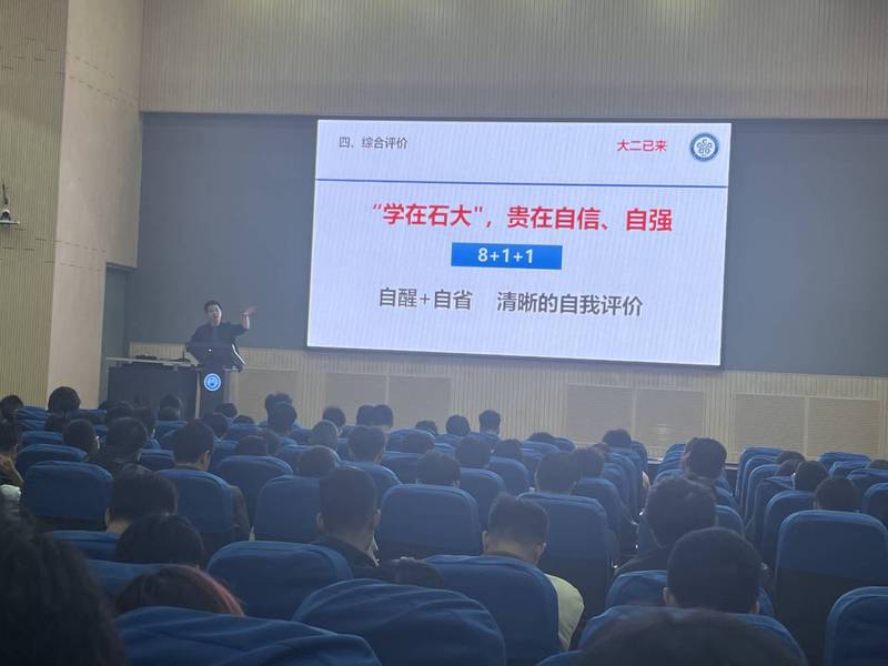 10月7日,ok138cn太阳集团古天乐2022级于南教100召开了以“学在石大,贵在自信、自强”为主题的新学期年级大会。会议由辅导员李峰弼老师主持,22级全体学生参会。