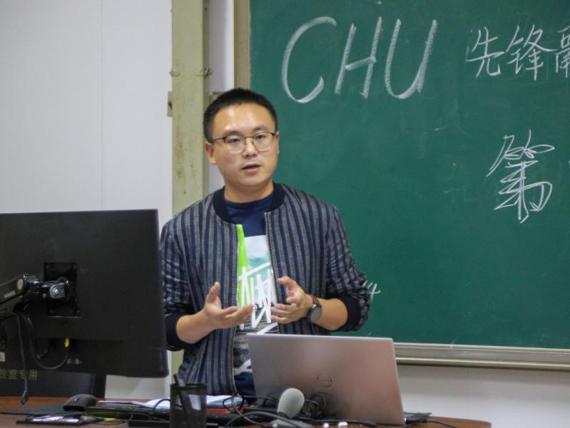 CHU先锋融媒体中心指导教师郑健分享新闻宣传工作经验 肖朋磊摄