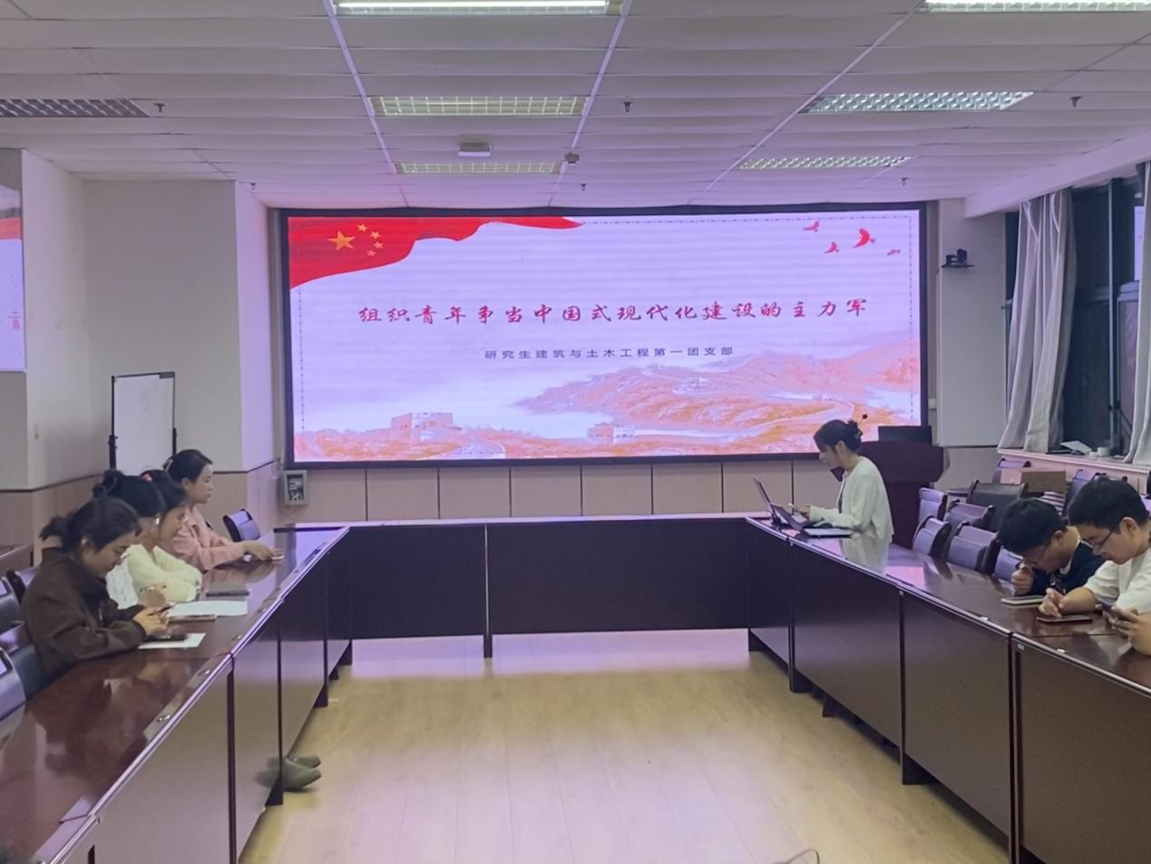 研究生建筑与土木工程第一团支部于2023年10月18日在工科楼D345开展了“组织青年争当中国式现代化建设的主力军”的主题团日活动。共计50人参与本次活动。本次会议诣在认真学习宣传贯彻党的二十大精神,深入学习宣传贯彻习近平总书记重要讲话精神,全面落实团十九大部署,持续聚焦团的主责主业,动员引领广大青年在全面建设社会主义现代化国家、全面推进中华民族伟大复兴的历史进程中挺膺担当、团结奋斗。