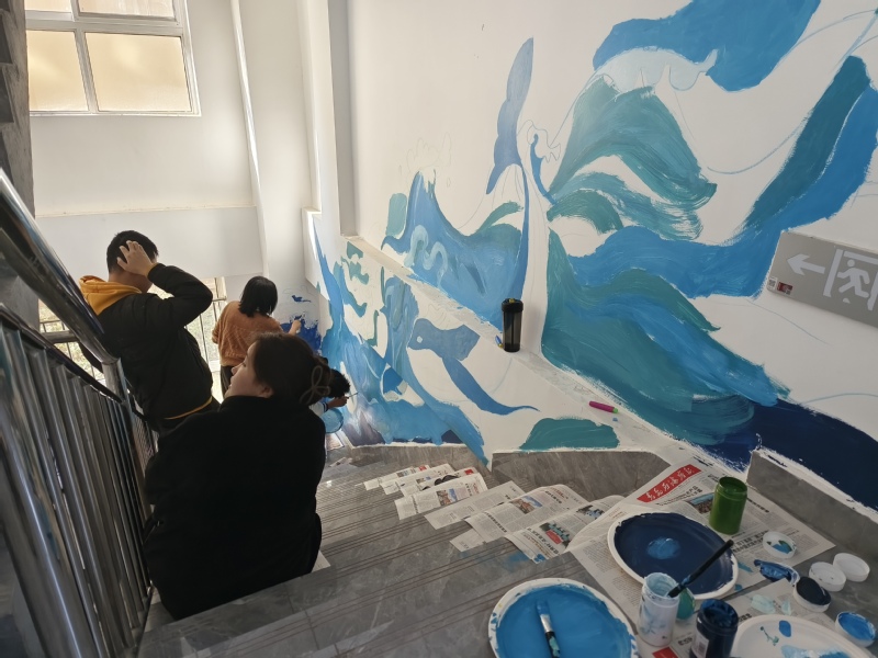 近日,学院建筑2002、2101、2201、2202、2302等多个团支部联合高体2101团支部前往青岛西海岸新区长江路街道三江路社区开展“蔚蓝海洋我的家”主题墙绘活动。