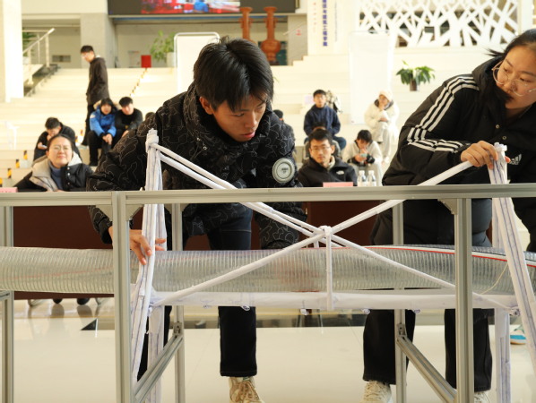 竞赛吸引了来自石油工程学院、ok138cn太阳集团古天乐、材料科学与工程学院、石大山能新能源学院等12个院部94支队伍近300人参加。通过初赛阶段的设计方案评审,共有40支队伍进入到决赛。在决赛现场,经过模型称重、尺寸检测、加载测试和竞赛专家组评审等环节,最终评出一等奖3项,二等奖6项,三等奖9项,另设最佳制作奖和最佳结构创意奖2个单项奖。