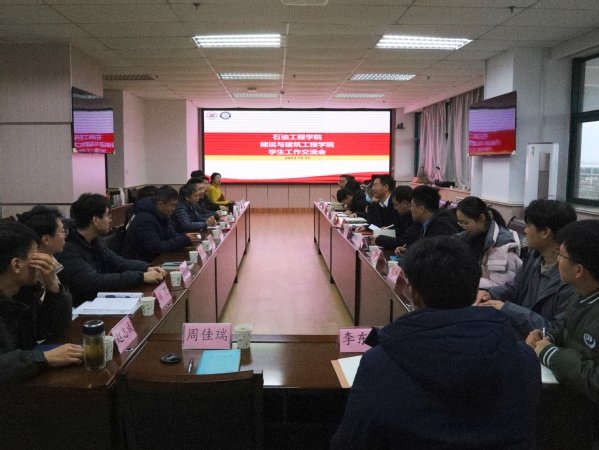 12月11日,石油工程学院党委副书记陈银吨带领学院全体辅导员来到储建学院交流学生工作,储建学院党委副书记周辉及全体辅导员参加交流会,党委学生工作部(武装部)副部长张程应邀出席并指导工作。会上,两学院专职辅导员和保研辅导员依次进行了学生辨识比赛,并就学院学生工作进行了深入交流研讨。