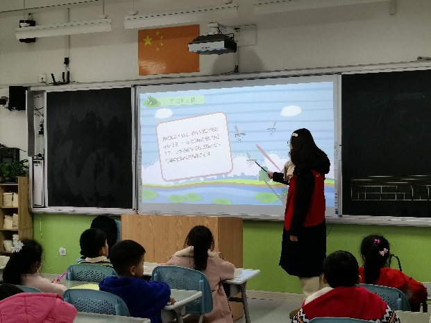 上课开始前,小朋友们准备好了课上要用的材料,有秩序的在座位上做好。在老师的指导下,志愿者开始了今天折纸的授课。志愿者从青蛙的“呱呱呱”叫声引入,生动地介绍了青蛙的习性,生长过程,以及青蛙的价值。同时,志愿者也呼吁要保护青蛙,保护大自然。小朋友们积极配合,积极回应志愿者们的提问,让志愿者们感受到了小朋友们对这堂折纸课的期待和喜爱。