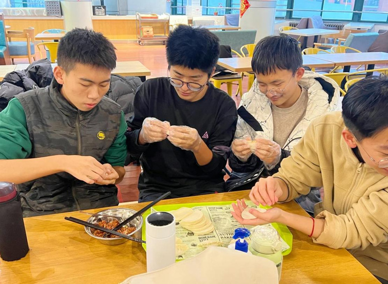 活动结束后,支部成员们吃着亲手包的饺子,纷纷露出笑脸,并与自己的饺子合影留念。吾丽盼·阿哈提同学表示:“在这次包饺子的团日活动中,我不仅感受到了同学之间互相帮助、团结向上的温暖,还体验了山东这边包饺子的方法,感到很有趣,同时,这也让我加深了对中国传统习俗的认识。”