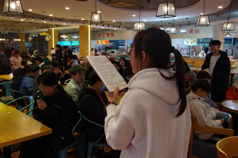 活动伊始,建环2302团支书谭紫彤及宣传委员赵雪柔与餐厅工作人员进行对接,确定了活动主要内容及注意事项。力学2301班长李倬勰及团支书张盈盈则为宪法知识竞赛做了充分准备工作。