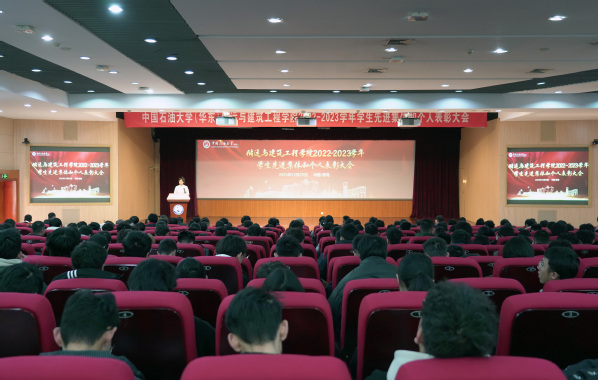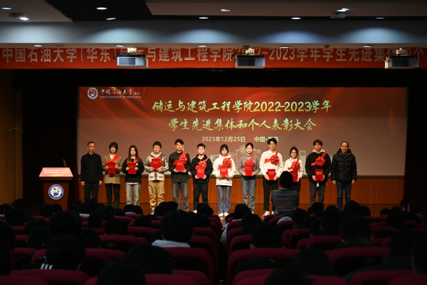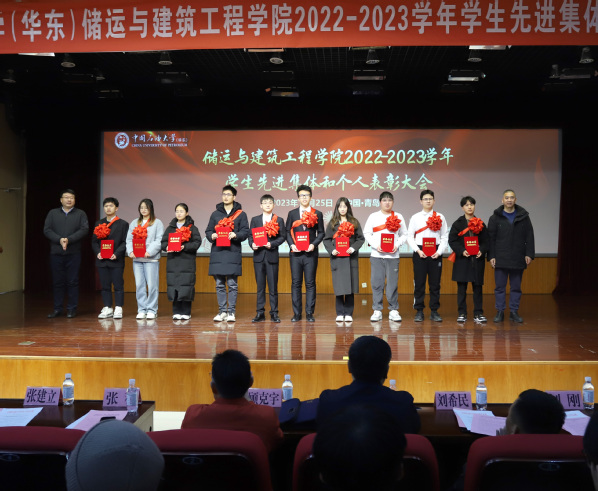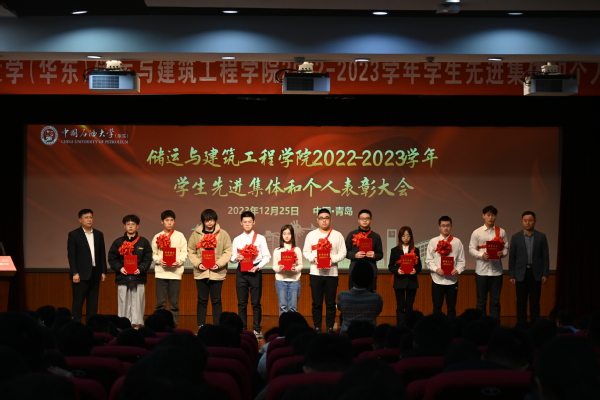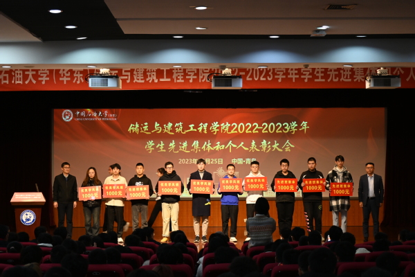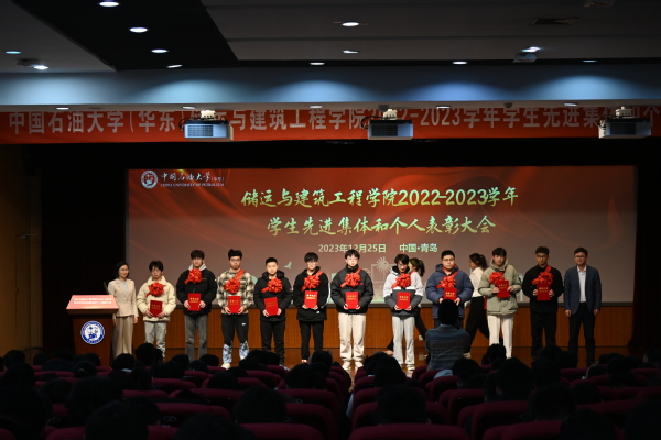 姚海田宣读表彰文件,在学校授予建环2001班等12个班级先进班集体、优良学风班荣誉称号,授予韩晨玉等1130名学生国家奖学金、学校奖学金、企事业奖学金的基础上,授予建筑1901等8个班级“优良学风班”荣誉称号,授予唐英哲等154名同学“海普储运学习优秀奖学金”“陈财君土木学习优秀奖学金”“泰宇力学学习优秀奖学金”“中石大设计建筑学习优秀奖学金”“建环学习优秀奖学金”“胜利监理组织能力奖学金”“莱克体育特长奖学金”“泰宇科技实践奖学金”“海普宣传特长奖学金”“森诺胜利助学金”“胜利监理就业奖学金”“陈财君就业奖”“琴港就业奖学金”等奖助学金。设奖单位嘉宾及学校领导老师为获奖代表颁奖。