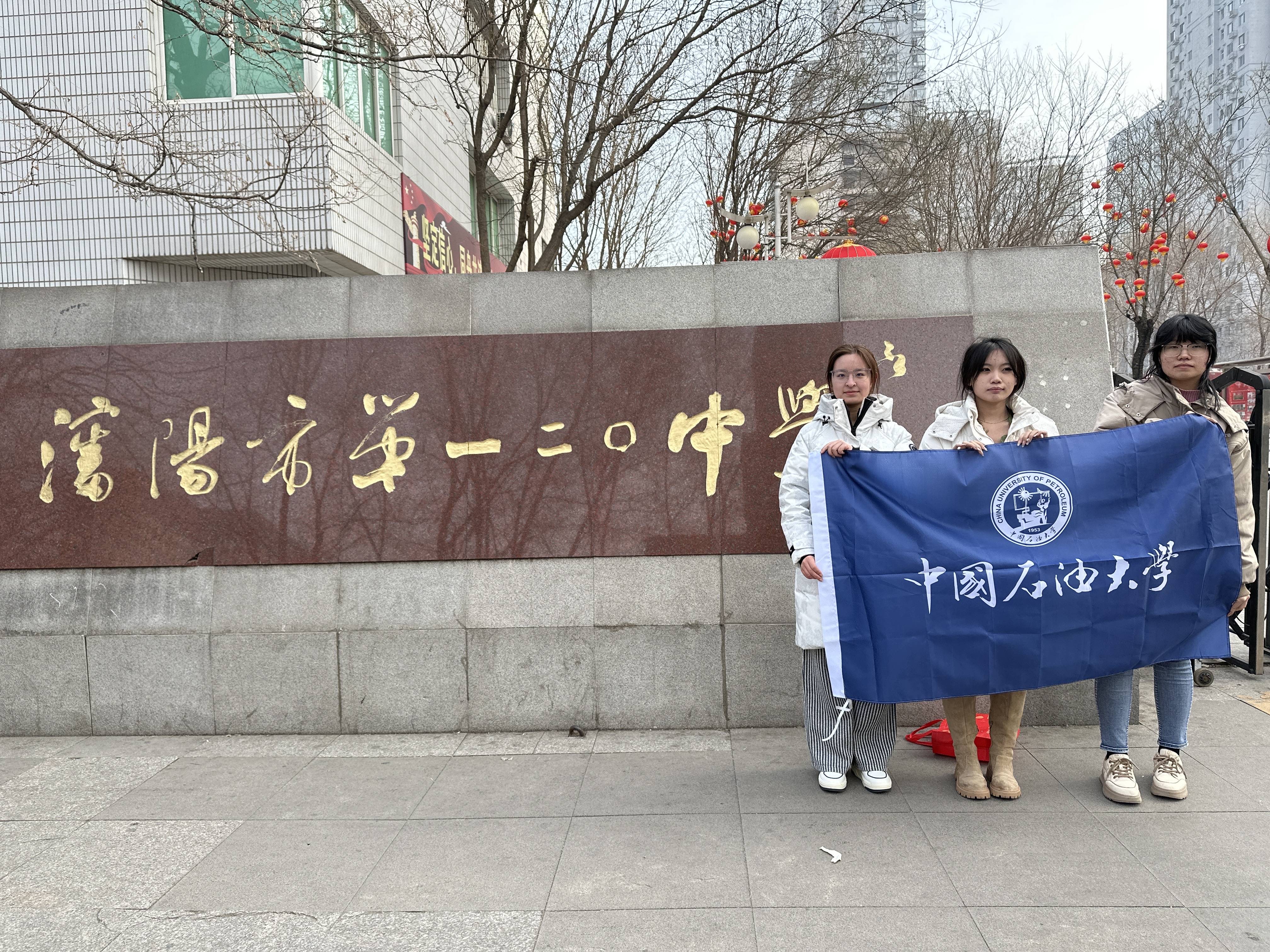 活动开始前,团队成员与高中负责人取得联系,确定了入校时间、宣传年级与宣讲班级。活动伊始,成员们进入高二16班分发招生手册,对同学们进行详细的招生宣讲。主讲人邱玉婷从建校背景、学校环境、校内资源、辽宁省录取分数线等多方面向同学们介绍石大。接着,张可欣和于佳琪分享自己的高中学习经验和大学生活,并对同学们提出的问题进行解答,留下意向生源的联系方式,与同学们留影纪念。最后,团队成员前往高三楼,在校内公示板共同张贴招生海报,为高三同学提供报考建议。